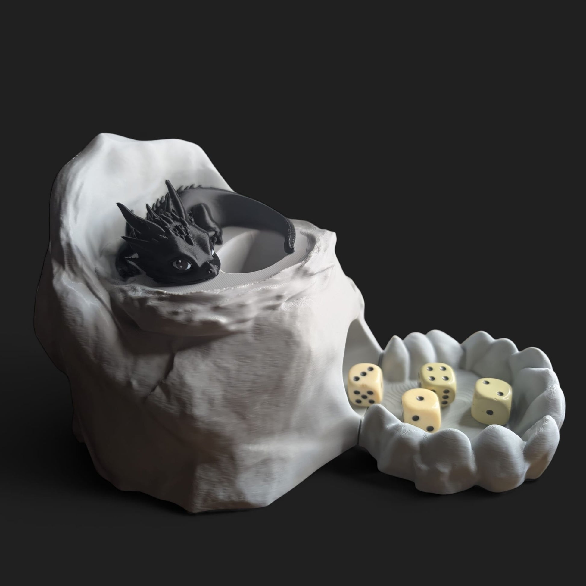 Der Würfelturm Drachennest sorgt für faire Spiele ohne Schummeleien – einfach Würfel rein und beobachten, wie die Würfel sicher und spannend nach unten purzeln. Mit seinem verspielten Drachenmotiv bringt er Spaß und Ordnung an jeden Spieltisch. Perfekt, um beim nächsten Spieleabend das Glück herauszufordern!